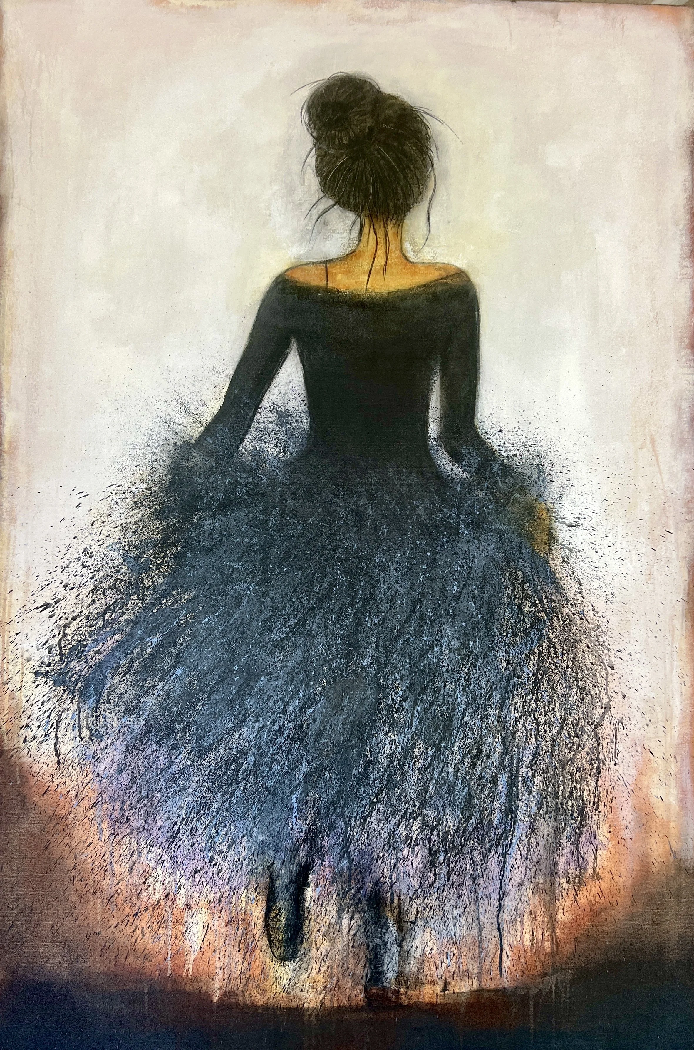 Mine værker udspringer af en dybt intuitiv proces, hvor et indtryk – en stemning, en tanke eller en sansning – transformeres til en følelse, der former selve udtrykket på lærredet. Et budskab eller en visuelfortælling der skaber en følelse hos beskueren. Jeg arbejder primært i sort og hvid, hvor farver kun optræder sporadisk og med en næsten ceremoniel betydning. Disse få farver får dermed en styrke og en intensitet, som kontrasterer det monokrome univers, de opstår i. Det er i mørket, i den sorte farve at lyset, træder frem.